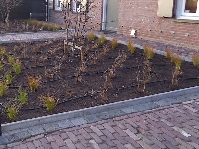 Door de steeds vaker voorkomende droge zomers heeft Van der Vleuten groenprojecten zich ook extra toegelegd op de aanleg van tuinberegening.